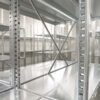 Scaffalatura metallica ad incastro i cui elementi principali sono: montanti, traversine, pannelli, correnti e/o crociere; tutti ricavati da lavorazioni di profilatura e montanti senza l’ausilio di bulloni. La portata del piano è variabile e va da 80 fino a 400 Kg c.d.u. (carico uniformemente distribuito), è dotata di una serie di accessori che la rendono adatta per diverse esigenze: magazzini, archivi, uffici etc.